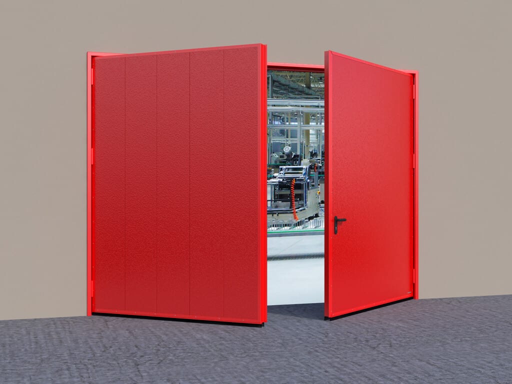 Распашные противопожарные ворота в промышленном помещении - характеристики